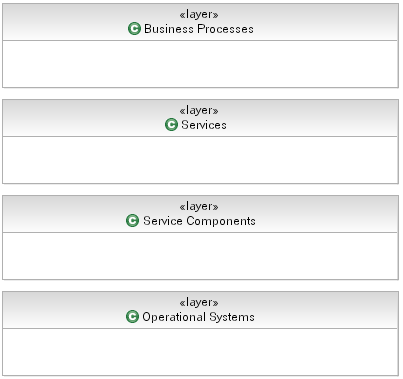 The following is a layered view of an SOA showing typical (and indeed recommended) layers for the different elements present in a solution.