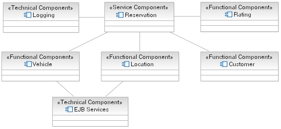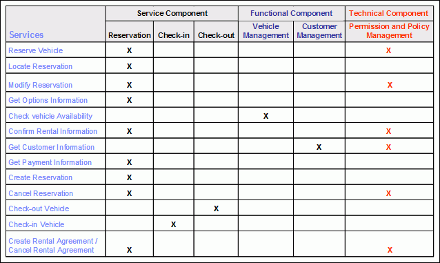 In completing the Rent-a-Car component model (see functional component step above) we include two technical components